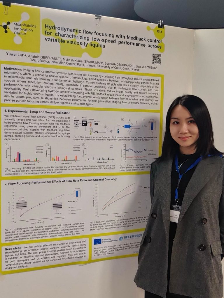 ๐ฉโ๐ฌ DC6 Yuwei Liu (Microfluidics Innovation Center) showcased her poster โHydrodynamic flow focusing with feedback control for characterizing low speed performance across variable viscosity liquidsโ at NanoBioTech Montreux 2025, sharing innovative insights on how microfluidics can tackle some of the critical challenges in imaging flow cytometry.